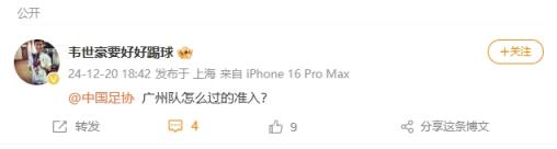 有內(nèi)情?韋世豪質(zhì)問中國(guó)足協(xié):廣州隊(duì)怎么過的準(zhǔn)入? ???